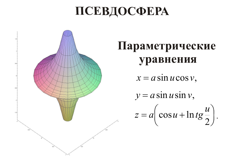 Псевдосфера - поверхность постоянной отрицательной кривизны.